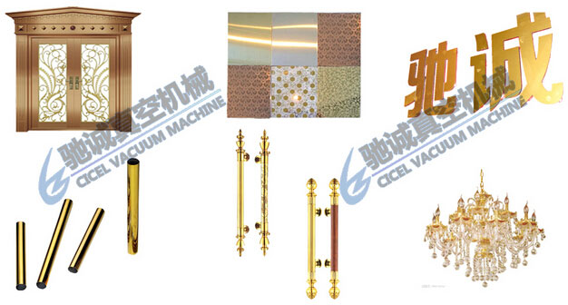 利用驰诚CCZK-ION离子镀设备可以在金属,玻璃,陶瓷等材料表面进行镀膜。普通装饰镀膜设备广泛适用于不锈钢展架,不锈钢散件,门花,花洒,把手,水暖五金、钟表、洁具、餐具、水龙头、金属打水机、手机金属壳、玻璃水晶装饰品、玻璃管等镀膜